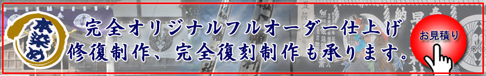 本染め神社幟・神社幕・紋幕を1枚より製作・復刻製作いたします。